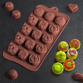 Форма для льда и конд. украшений «Клумба цветов», 20,5*10,5*1,5 см, 15 ячеек. 1687507