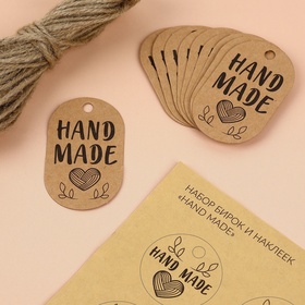 Набор бирок с джутом и наклейками «Hand made», 10 шт, 3,5*6 см / 6 шт, 4*4 см, цвет крафт